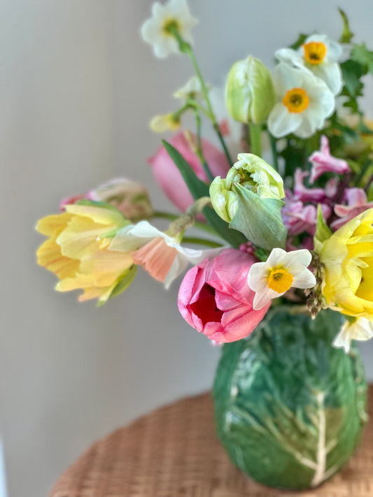 Currently, I offer bouquet subscriptions and custom arrangements (for local delivery or pickup), buckets of flowers for DIY events and small weddings, as well as other special seasonal delights using specialty cut flowers from April through early October (as Mother Nature allows). The season starts with heirloom narcissus, ranunculus and French double tulips in the Spring and ends in the Summer/Early Fall with gorgeous varieties of zinnias, cosmos, celosia and dahlias just to name a few.